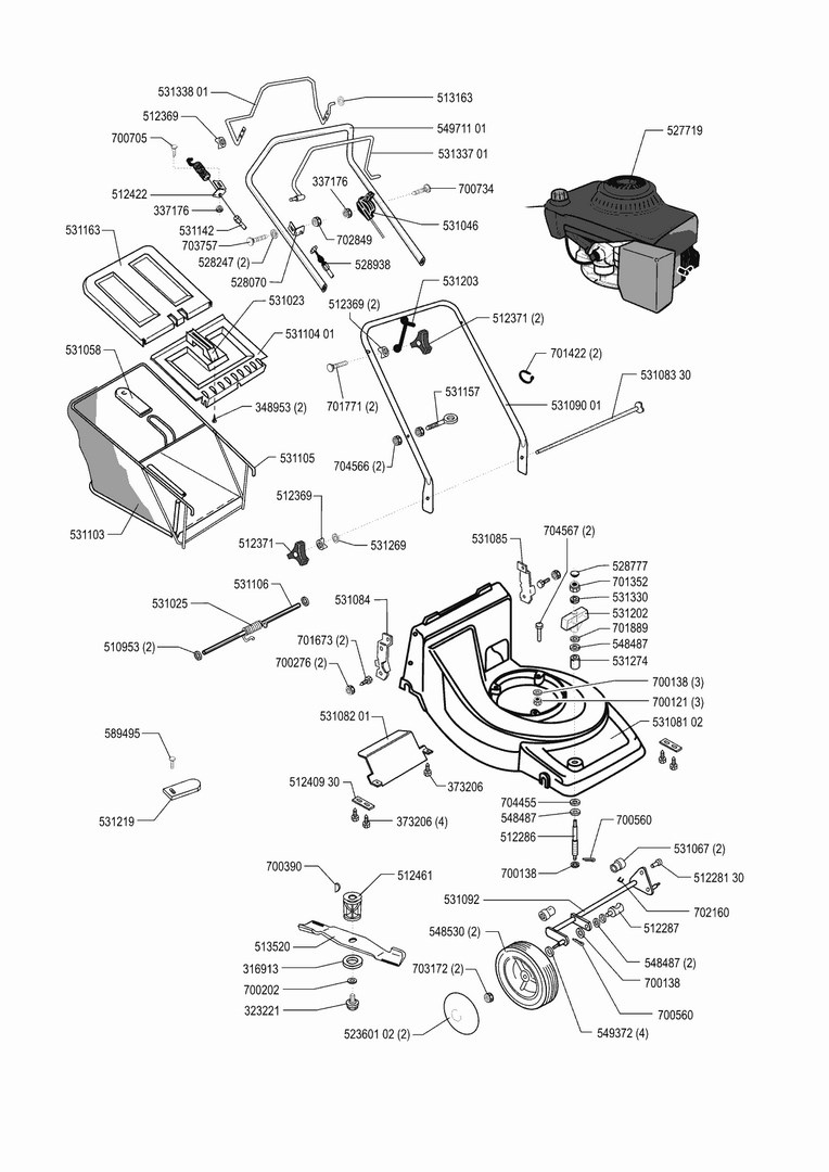 Zeichnungen von AL-KO Benzinrasenmäher CL 47 BRH ab Bj 03/2001 mit der Geräte-Artikelnr. 120655: