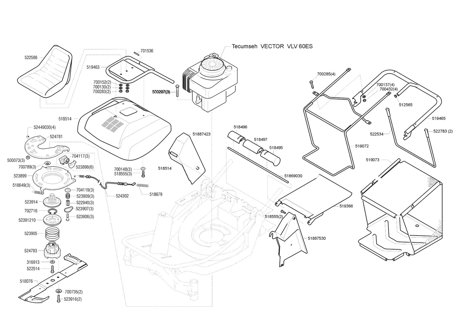 Zeichnungen von AL-KO Aufsitzmäher Ride on 700 ab Bj 05/1997 mit der Geräte-Artikelnr. 117360: