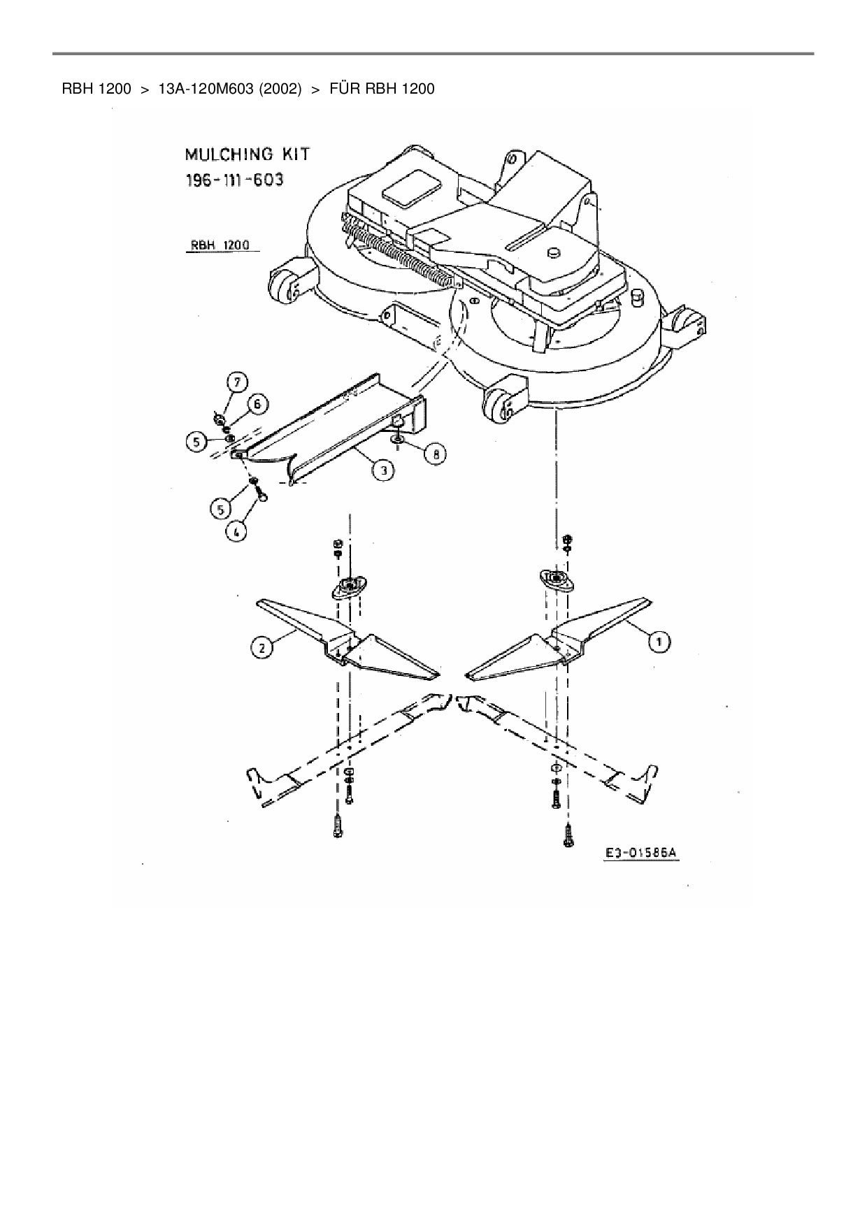 Ersatzteile für Rasentraktor Cub Cadet RBH 1200 aus der Zeichnung für RBH 1200: