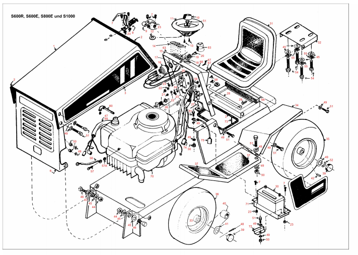 Zeichnung von Westwood Traktoren vor Baujahr 2001 1984-1986 oberer Aufbau S-Modelle: