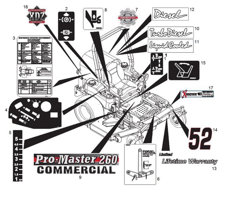 Hier finden Sie alle Ersatzteile von Gravely PRO-MASTER 260Z (992317) S.-NR.: AB 006000 sonstige Aufkleber :