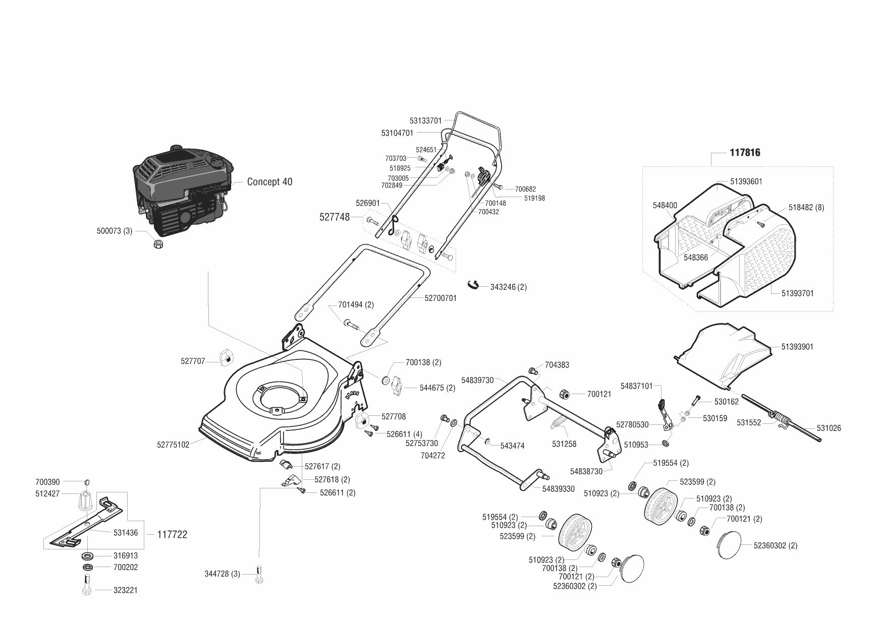 Zeichnungen von Top Garden Benzinrasenmäher 4801 BZ vor 04/1999 mit der Geräte-Artikelnr. 117982: