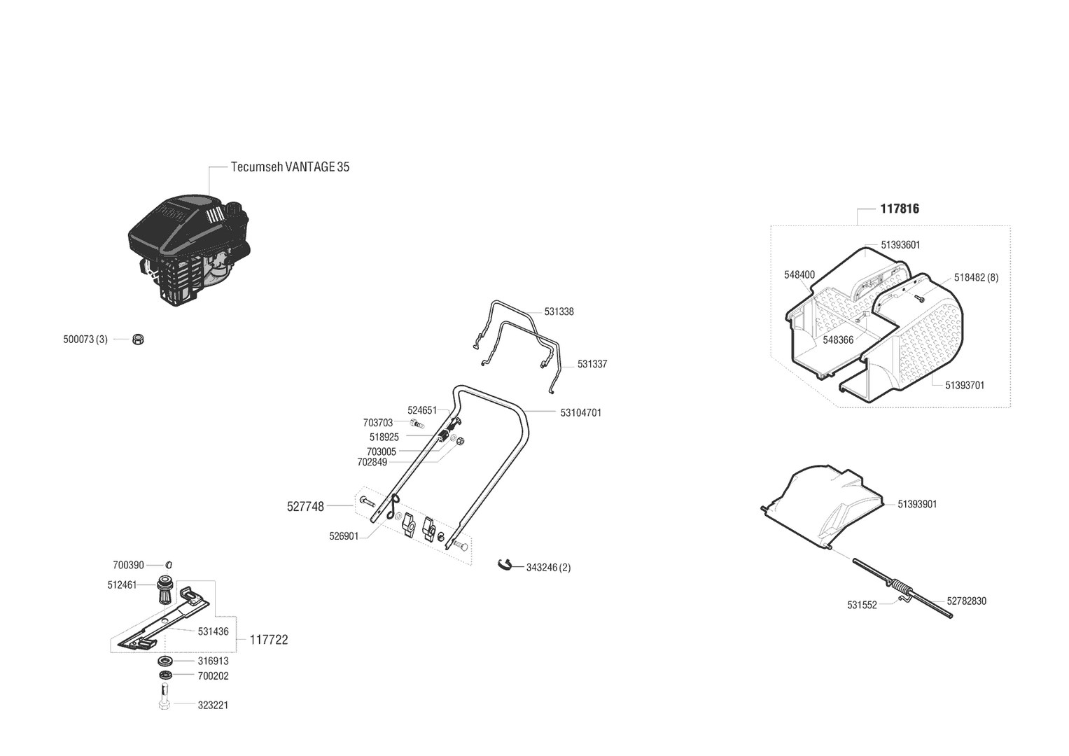 Zeichnungen von AL-KO Benzinrasenmäher Top 3500 HR vor 06/1999 mit der Geräte-Artikelnr. 117619: