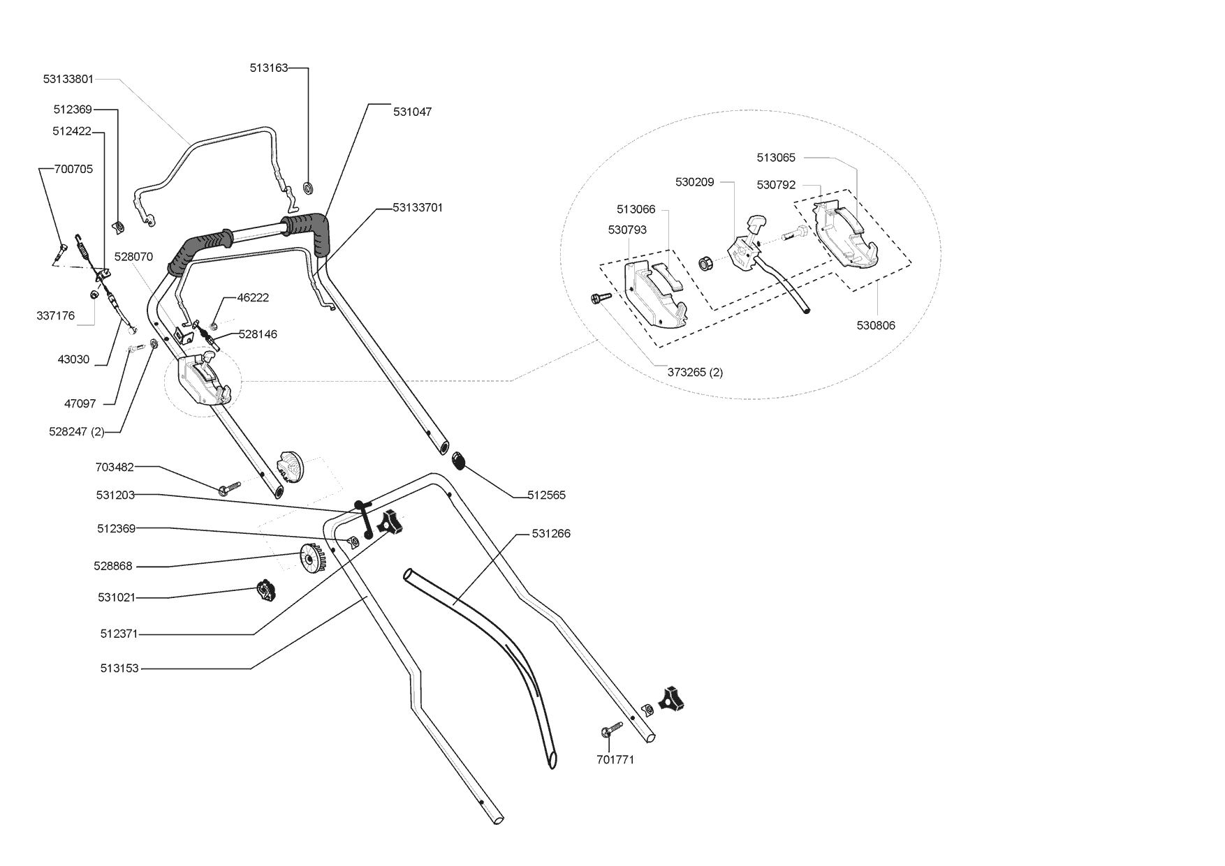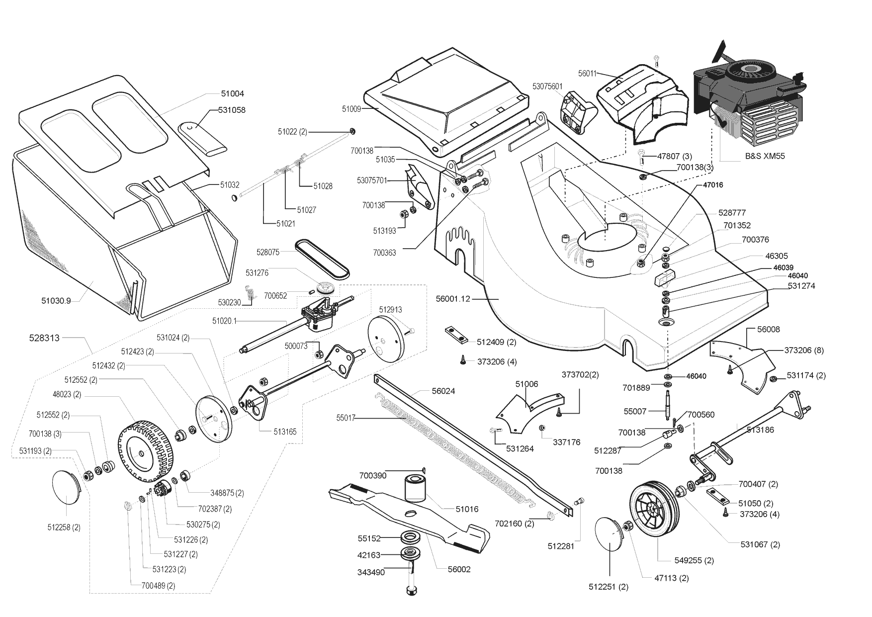 Zeichnungen von Orion Benzinrasenmäher 56 BR vor 09/1999 mit der Geräte-Artikelnr. 120509: